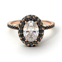 Oval Diamond Halo Hidden Black Diamonds Ring - Amy No. 32