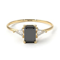 Emerald Cut Black Diamond With Triangles Ring - Remi No. 7