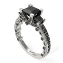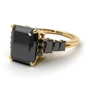 Emerald Cut Black Diamond Ring Hidden Round Diamonds - Sawyer No. 37