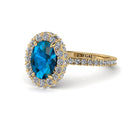 Oval Blue Topaz Halo Hidden Diamonds Ring - Amy No. 501