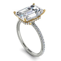 Two Tones Hidden Halo Emerald Cut Diamond Engagement Ring - Melodi No. 77