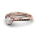 This delicate diamond engagement ring is a timeless classic of jewelry reinvented in modern forms. This ring is a classic round 0.25 carat diamond engagement ring with an additional stone in the center and the ring's sides.