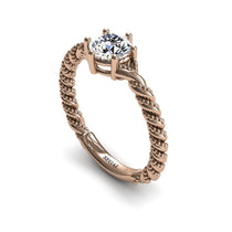 A prominent prong-set stone and intricately textured coiled band makes this one unforgettable ring. But don"t shake it from your thoughts-tell him this design is your dream ring and make it yours for an eternity. A diamond-or the stone of your choice-creates fireworks at the center of a top-of-the-line band crafted with a twist of solid gold intertwined with small round beads.