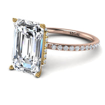 Explore the world of fine and fashionable jewelry with this Hidden Halo Emerald diamond Engagement Ring. Consisting of a thin band with round stones and an emerald center stone, this Hidden Halo Emerald diamond Engagement Ring is comfortable as well as beautiful. Wear this Hidden Halo Emerald diamond Engagement Ring for a sophisticated and elegant look, and you'll definitely be satisfied.