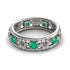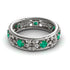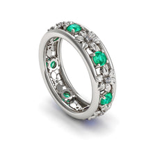 Are you searching for a ring to give her that will last her forever? This beautiful Anniversary ring is our Victoria Emerald ring with Ruby. Set in 14K White Gold, this beautiful ring has flowers and a vintage feel that will always be in style. Set with a Green Emerald and Red Ruby, this ring is a gift that she will treasure forever.