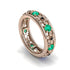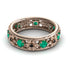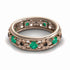 Are you searching for a ring to give her that will last her forever? This beautiful Anniversary ring is our Victoria Emerald. Set in 14K Rose Gold, this beautiful ring has flowers and a vintage feel that will always be in style. Set with a Green Emerald and Red Ruby, this ring is a gift that she will treasure forever.