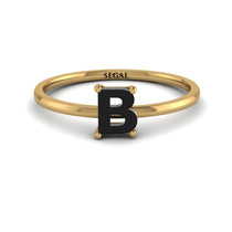 A unique gold ring with a natural Black diamond in the shape of a letter!