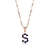 Crafted in gold this Initial Necklace features 13 Sapphire that adds glam to the elegant necklace. The most popular block initial style, suspended from an 18-inch cable-rope chain with a spring-ring clasp.