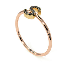 Two Tones Initial Black Diamond Ring - Raegan No. 19