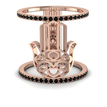 Unique, beautiful black diamond hamsa ring, made to protect and bring good luck to its owner. The ring is represented by two eternity rings, connected with an ancient symbol of protecting hand. This ring will be a gift with profound meaning and significance.