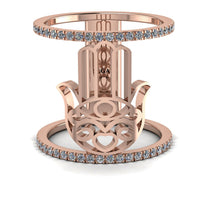 Unique, beautiful diamond hamsa ring, made to protect and bring good luck to its owner. The ring is represented by two eternity rings, connected with an ancient symbol of protecting hand. This ring will be a gift with profound meaning and significance.
