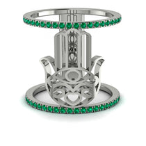 Unique, beautiful Emerald hamsa ring, made to protect and bring good luck to its owner. The ring is represented by two eternity rings, connected with an ancient symbol of protecting hand. This ring will be a gift with profound meaning and significance.