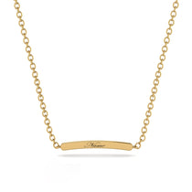 Display your name or showcase a meaningful word on a stunning Personalized Gold Bar Necklace! This gorgeous gold necklace pairs beautifully with everything in your closet; from summery tanks and tees to cozy cold-weather sweaters, it adds just the right finishing touch. Bar necklaces are one of the hottest accessories, offering simple, sleek styling and timeless appeal. They’re the perfect gift for yourself or that person who has just about everything – and they’re just right for any gift-giving occasion, including birthdays and holidays.