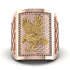 The Golden Eagle Men's Ring is a striking emblem of power and freedom, meticulously handcrafted from the finest gold. This bold and majestic ring features a detailed 3D eagle in mid-flight, symbolizing strength, courage, and a soaring spirit. The intricate design captures the eagle's wings fully spread, embodying the essence of independence and vision.The ring's surface is adorned with a refined mesh pattern, creating a textured backdrop that enhances the eagle's prominence. This elaborate detailing is framed by a polished gold border that adds a touch of sophistication, making the ring a perfect blend of artistry and rugged masculinity.Ideal for the man who embraces his inner warrior, the Golden Eagle Men's Ring is more than just a piece of jewelry—it's a statement of personal pride and a reminder of the heights that can be reached with determination and unwavering resolve. Whether worn as a symbol of personal achievement or as a declaration of one's indomitable spirit, this ring is sure to leave a lasting impression.