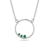 Modern and geometric, this open circle necklace celebrates family. Crafted gold, this sparkling design features three Emerald in the open circle that lights up your casual and dressy looks. With no beginning and no end, this shimmering Emerald circle pendant is a symbol of your everlasting love