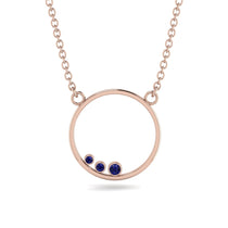 Modern and geometric, this open circle necklace celebrates family. Crafted gold, this sparkling design features three Sapphire in the open circle that lights up your casual and dressy looks. With no beginning and no end, this shimmering Sapphire circle pendant is a symbol of your everlasting love