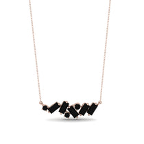 This mesmerizing Baguette black diamond Necklace has a lovely horizontal line design and is completely covered with baguette shaped stones. If you’re still deciding what to get, you can be sure that this Baguette black diamond Necklace is what you want.