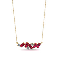This mesmerizing Baguette diamond Necklace has a lovely horizontal line design and is completely covered with baguette shaped stones. If you’re still deciding what to get, you can be sure that this Baguette diamond Necklace is what you want.