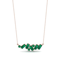 This mesmerizing Baguette Emerald Necklace has a lovely horizontal line design and is completely covered with baguette shaped stones. If you’re still deciding what to get, you can be sure that this Baguette Emerald Necklace is what you want.