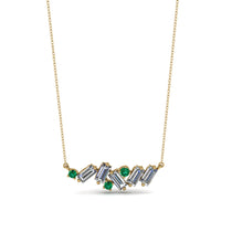 This mesmerizing Baguette Emerald Necklace has a lovely horizontal line design and is completely covered with baguette shaped stones. If you’re still deciding what to get, you can be sure that this Baguette Emerald Necklace is what you want.