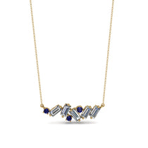 This mesmerizing Baguette Sapphire Necklace has a lovely horizontal line design and is completely covered with baguette shaped stones. If you’re still deciding what to get, you can be sure that this Baguette Sapphire Necklace is what you want.