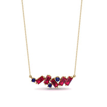 This mesmerizing Baguette Sapphire Necklace has a lovely horizontal line design and is completely covered with baguette shaped stones. If you’re still deciding what to get, you can be sure that this Baguette Sapphire Necklace is what you want.