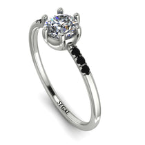 Glow with style and lavishness with this irresistible Basket diamond Ring. This Basket Diamond Ring has a superb design and refined appeal, thanks to its narrow band and round center diamond. Furthermore, it has second, smaller round stones on the sides. Get this Basket diamond Ring and you’ll have a piece of jewelry she will always wear.