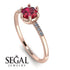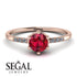 Glow with style and lavishness with this irresistible Basket Ruby Ring. This Basket Diamond Ring has a superb design and refined appeal, thanks to its narrow band and round center Ruby. Furthermore, it has second, smaller round stones on the sides. Get this Basket Ruby Ring and you’ll have a piece of jewelry she will always wear.
