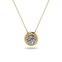 Obtain a high quality and alluring pendant for yourself with this Bezel diamond Pendant. This pendant has a lovely round shape and a single round stone adorning it. The perfect mixture of high quality and strikingly lovely design is within your grasp with this Bezel diamond Pendant.