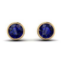 Sparkle mixed with sophistication. These gorgeous round-shape Sapphire stud earrings are bezel set for a modern look. These earrings are essential for an everyday look and a great luxurious gift idea for special occasions.