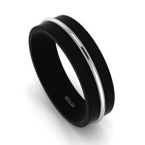 This beautiful black and gold-tone black titanium ring features a matte finish top with a high polish grooved center. If you are looking for a ring that is scratch proof and forever keeps its shine then our Black Titanium rings are for you.