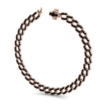 Big and bold, this beautifully crafted Miami Cuban Link chain is featured in solid Gold. The links are detailed with pave set brilliant small round cut black diamond. This luxurious necklace is wide and great to wear by itself or with your favorite charm. This vibrant chain has a secure locking with a durable large box clasp holding the necklace.