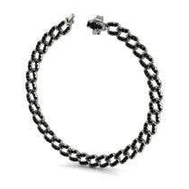 Big and bold, this beautifully crafted Miami Cuban Link chain is featured in solid Gold. The links are detailed with pave set brilliant small round cut black diamond. This luxurious necklace is wide and great to wear by itself or with your favorite charm. This vibrant chain has a secure locking with a durable large box clasp holding the necklace.