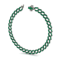 Big and bold, this beautifully crafted Miami Cuban Link chain is featured in solid Gold. The links are detailed with pave set brilliant small round cut Emerald. This luxurious necklace is wide and great to wear by itself or with your favorite charm. This vibrant chain has a secure locking with a durable large box clasp holding the necklace.