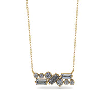 Look mesmerizing and impressing with this diamond Baguette Necklace Mix. This necklace has a lovely horizontal line design and is completely covered with baguette and round shaped stones. If you want a lovely accessory for your neck, which will stay in your collection for a long time to come, this diamond Baguette Necklace Mix is the one for you!