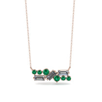 Look mesmerizing and impressing with this diamond Baguette Necklace Mix. This necklace has a lovely horizontal line design and is completely covered with baguette and round shaped stones. If you want a lovely accessory for your neck, which will stay in your collection for a long time to come, this diamond Baguette Necklace Mix is the one for you!
