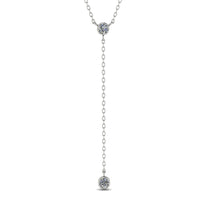 Perfectly suited for a deep V neckline, the Lariat Necklace features two pavé-accented bezel set diamond framed in gold for a delicate sparkle. This can be worn for a cocktail party or even would great with a buttoned down shirt.