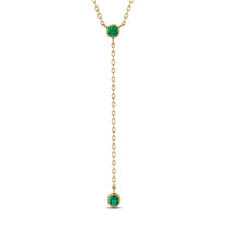 Perfectly suited for a deep V neckline, the Lariat Necklace features two pavé-accented bezel set Emerald framed in gold for a delicate sparkle. This can be worn for a cocktail party or even would great with a buttoned down shirt.