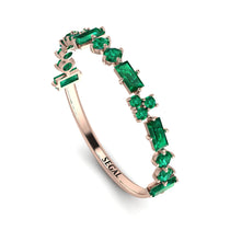 With its dazzling design and charisma, this Eternity Mix Emerald Ring will definitely win you over. This mesmerizing Eternity Mix Emerald Ring is an eye-catching thin band, with a row of alternating baguette and round shaped diamonds. You’ll be making the right choice with this enchanting Eternity Mix Emerald Ring.