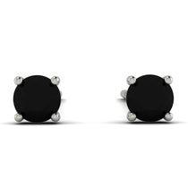 Simple and elegant, these solitaire black diamond earrings showcase a graceful drop design. The round black diamond are secured in four-prong settings and exude their beautiful glam hue. Set in gold, these black diamond earrings are complete with lever back closures.
