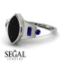 If you something both original and modern, you’ll get it with this captivating Marquise Bezel black diamond Ring. This Marquise Bezel black diamond Ring is a round band with a marquise stone in the center, an emerald shaped ring to either side of it, and a round shaped stones in either side of those. When you want to stand out and be noticeable, this Marquise Bezel black diamond Ring is for you.