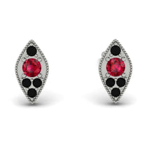 Perfectly petite, these vintage-inspired Ruby stud earrings are an adorable look she'll never want to take off. Crafted in marquise shape gold, each anytime earring showcases a sparkling in an intricate milgrain-lined bezel setting. Captivating Ruby and a bright polished shine, these post earrings secure comfortably with friction backs.