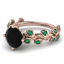 Hers 2 Carat Black Diamond Engagement Ring Leaves All Around - Sydney 2ct No. 23