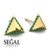 Take your look up a notch with these sleek Emerald stud earrings. Fashioned in warm gold, each triangular stud shimmers with a 3-way border by pavé-set bright white Emerald. White Emerald line the edges of each design, ensuring sparkle and shine from every angle. Beautifully finished and ready to wear, these glistening earrings are secured comfortably with friction back