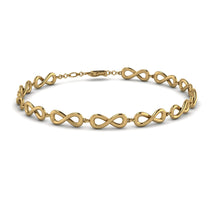 Fashionable infinity designs create the links to this twinkling, showstopper gold bracelet. This is a crafty seven-inch long infinity sign bracelet features a polished finish for lasting shine. A fancy lobster clasp safely secures the bracelet so that you may move worry-free.