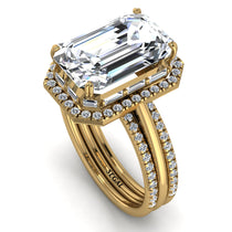 Exhibit splendor, grace and a strong sense of fashion with this fascinating Halo diamond Emerald Cut Ring with Hidden Diamonds. It has a baguette diamond center stone, with 30 round stones surrounding it. For turning heads and impressing everyone, this Halo diamond Emerald Cut Ring with Hidden Diamonds is just what you need.