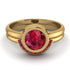 This Bezel Ruby Bridal Set is a comforting and classy ring, and you’ll definitely love it. It has a gorgeous round-shaped on the top, in its own circular band, and the band is circular as well. If you’re still undecided and want something comfortable, choose this Bezel Ruby Bridal Set.