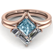 Those who want something eye-catching, which has a look that will be in fashion forever, will love this Stacking Princess Aquamarine Ring. This Stacking Princess Aquamarine Ring comprises of a lovely double band, with a princess shaped Ruby stacked on baguette shaped second Rubys designed in a V shape. With this Stacking Princess Aquamarine Ring you’ll get the ideal blend of first rate comfort and high quality.