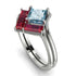Those who want something eye-catching, which has a look that will be in fashion forever, will love this Stacking Princess Aquamarine Ring. This Stacking Princess Aquamarine Ring comprises of a lovely double band, with a princess shaped Ruby stacked on baguette shaped second Rubys designed in a V shape. With this Stacking Princess Aquamarine Ring you’ll get the ideal blend of first rate comfort and high quality.