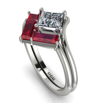 Those who want something eye-catching, which has a look that will be in fashion forever, will love this Stacking Princess diamond Ring. This Stacking Princess diamond Ring comprises of a lovely double band, with a princess shaped diamond stacked on baguette shaped second diamonds designed in a V shape. With this Stacking Princess diamond Ring you’ll get the ideal blend of first rate comfort and high quality.